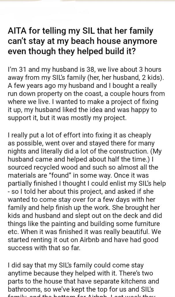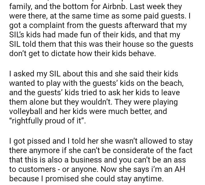 AITA for telling my SIL that her family can’t stay at my beach house