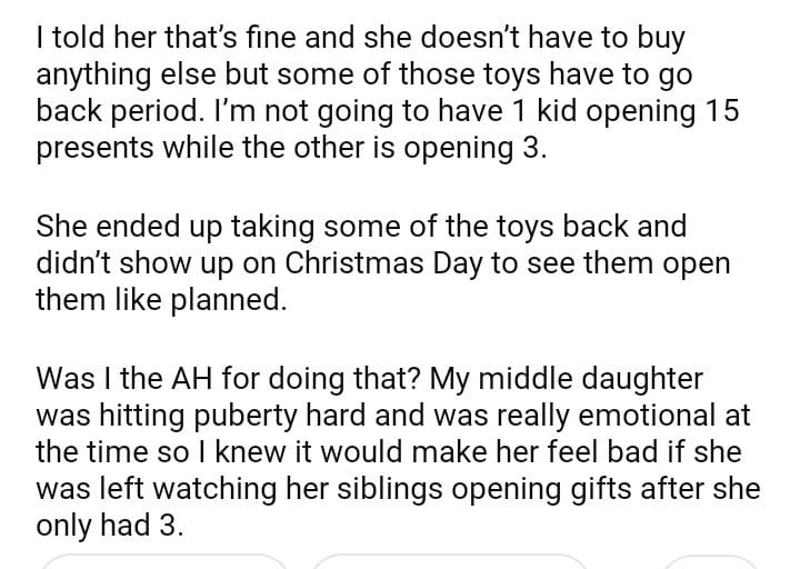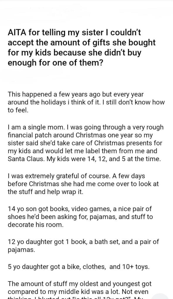 AITA for telling my sister I couldn’t accept the amount of gifts she bought for my kids