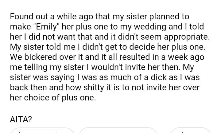 AITA for telling my sister I won’t be inviting her to my wedding