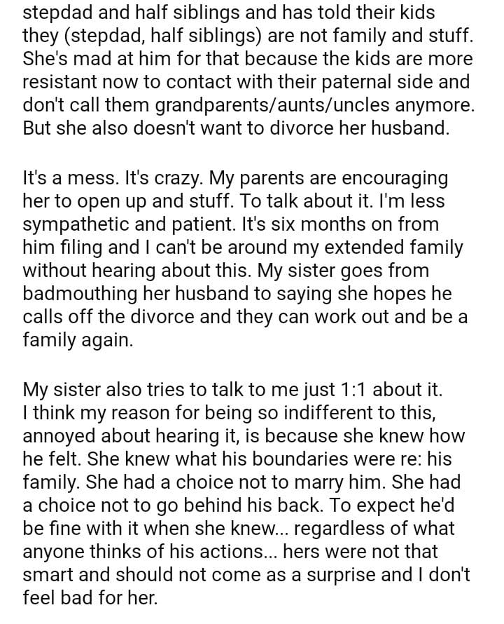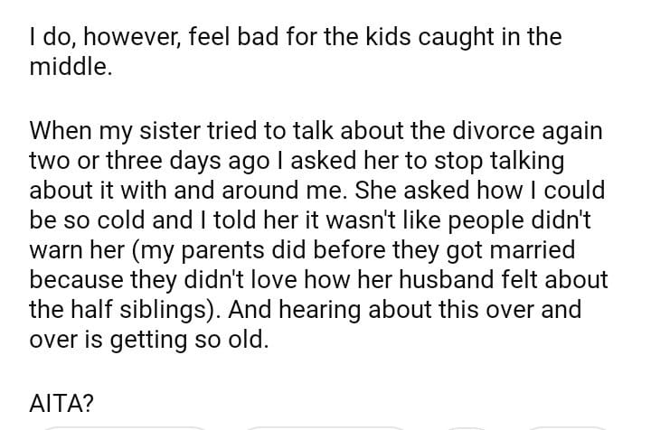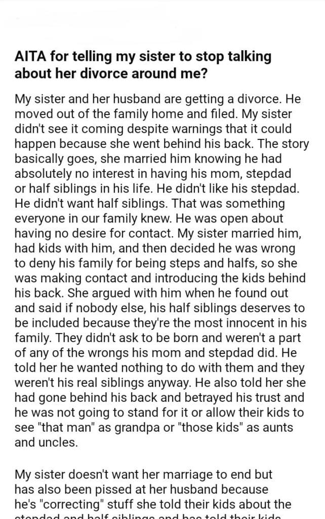 AITA for telling my sister to stop talking about her divorce around me?