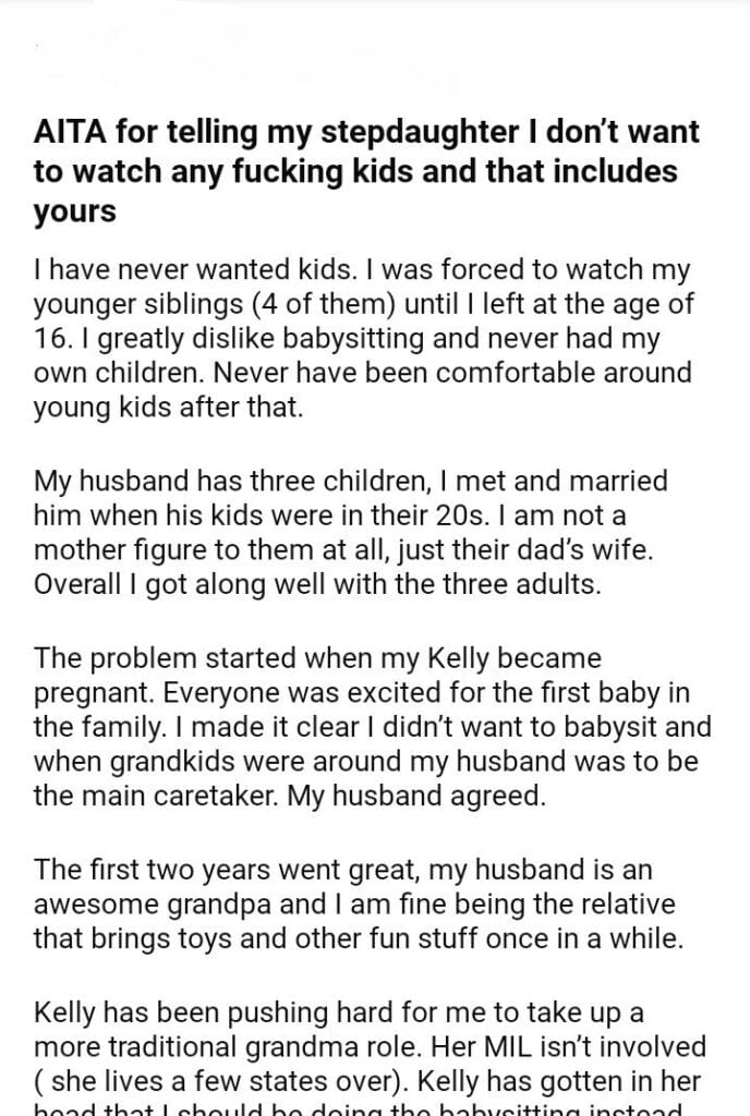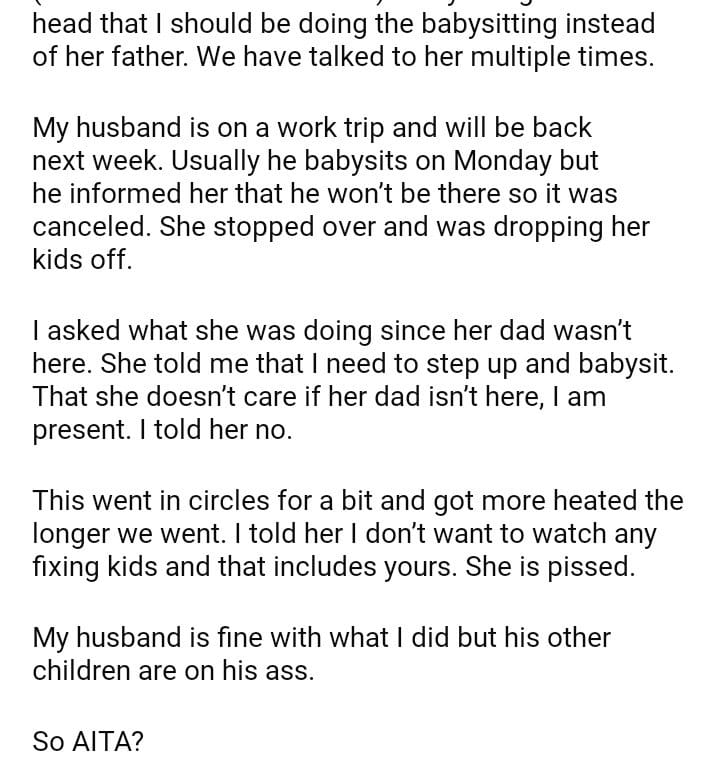 AITA for telling my stepdaughter I don’t want to watch any kids and that includes yours