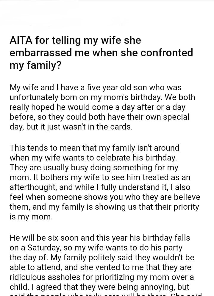 AITA For Telling My Wife And My Family