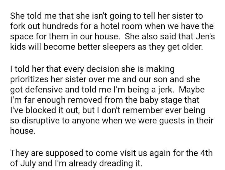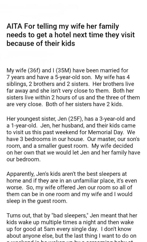 AITA For telling my wife her family needs to get a hotel next time they visit because of their kids
