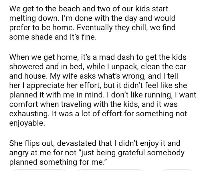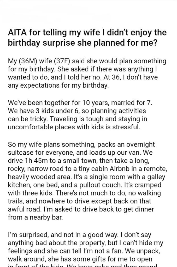 AITA for telling my wife I didn’t enjoy the birthday surprise she planned for me?