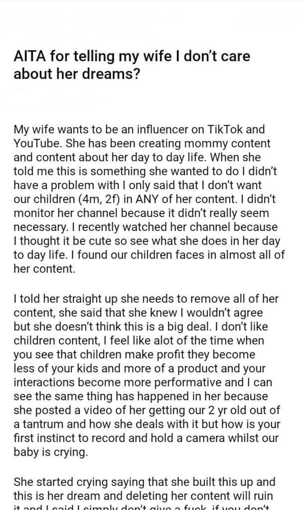 AITA for telling my wife I don’t care about her dreams?