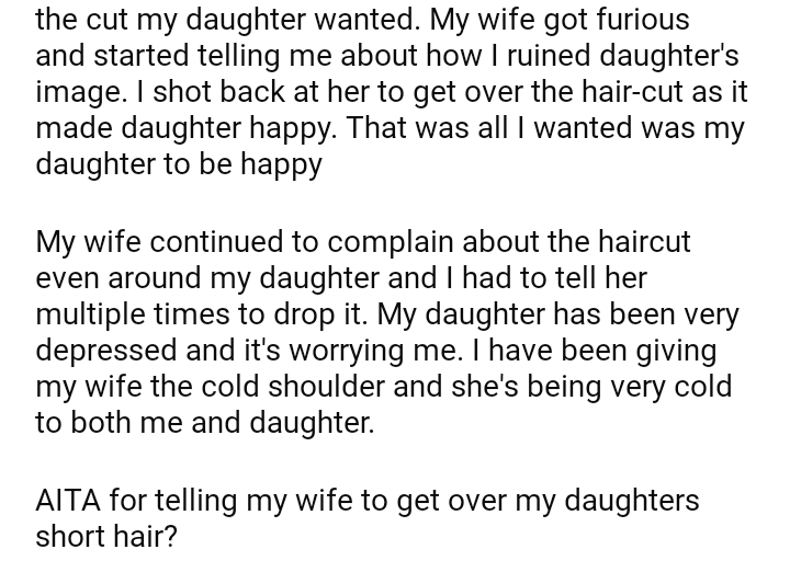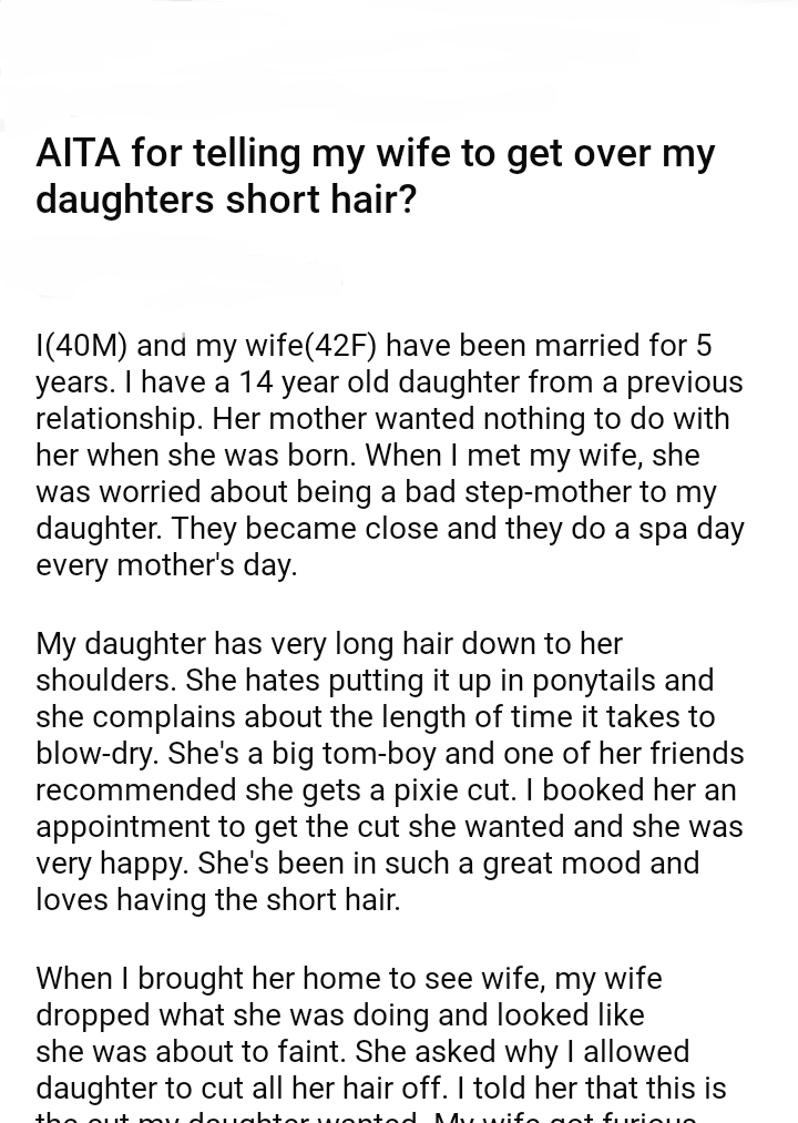 AITA for telling my wife to get over my daughters short hair?