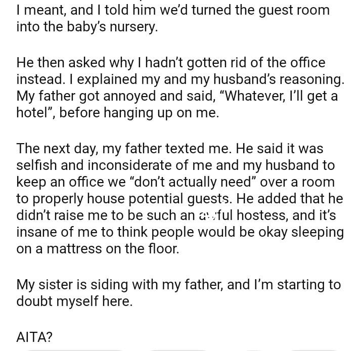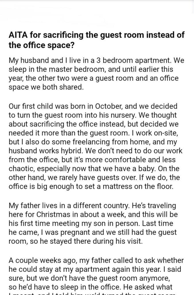 AITA for the guest room instead of the office space?