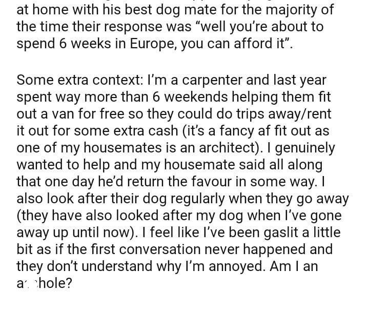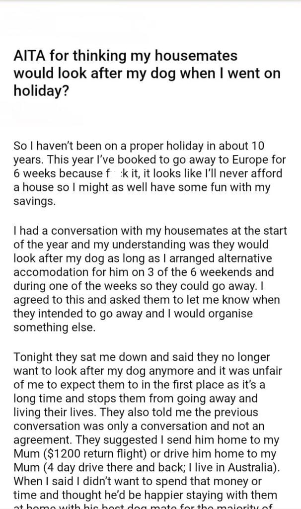 AITA for thinking my housemates would look after my dog when I went on holiday