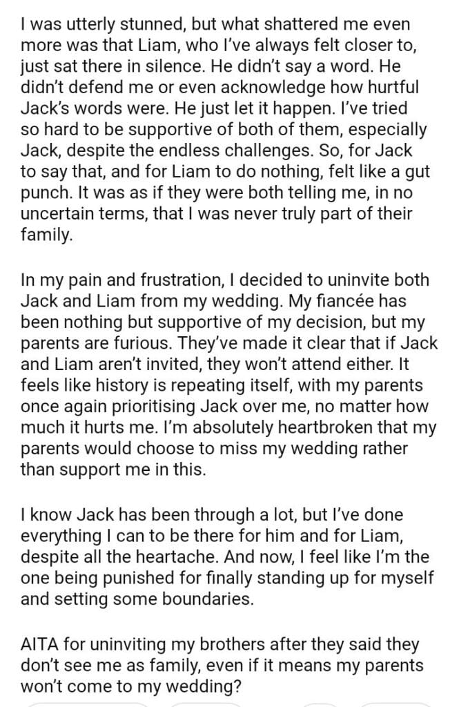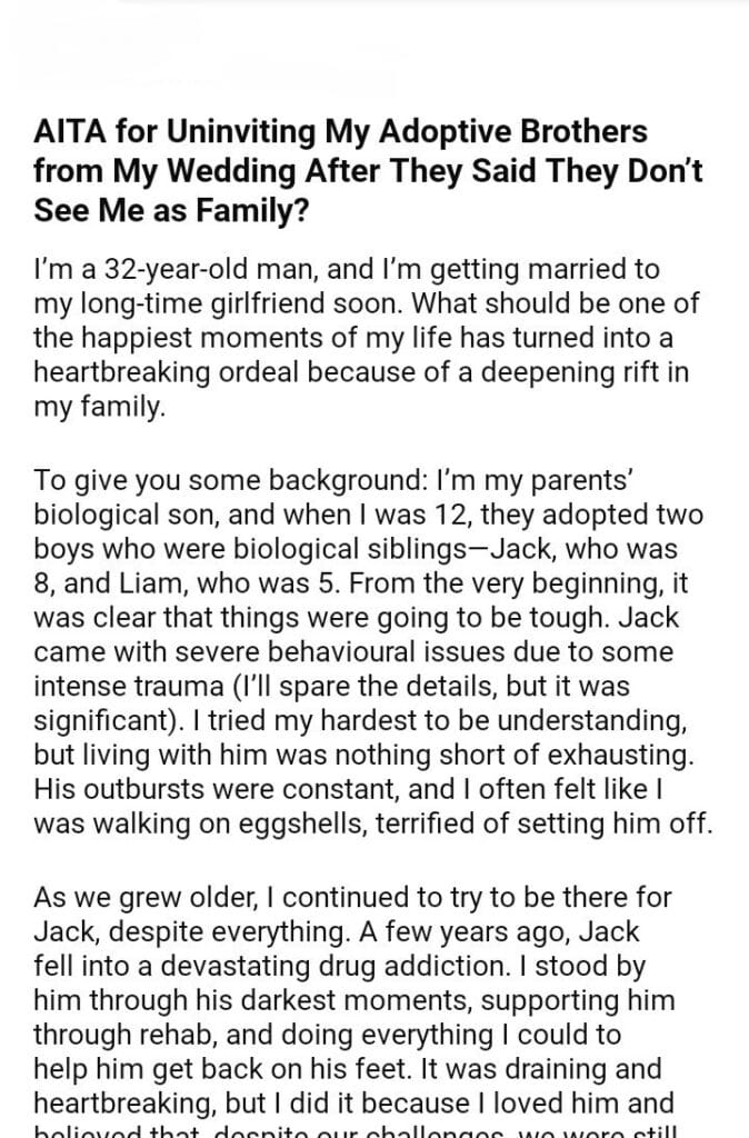 AITA for Uninviting My Adoptive Brothers from My Wedding