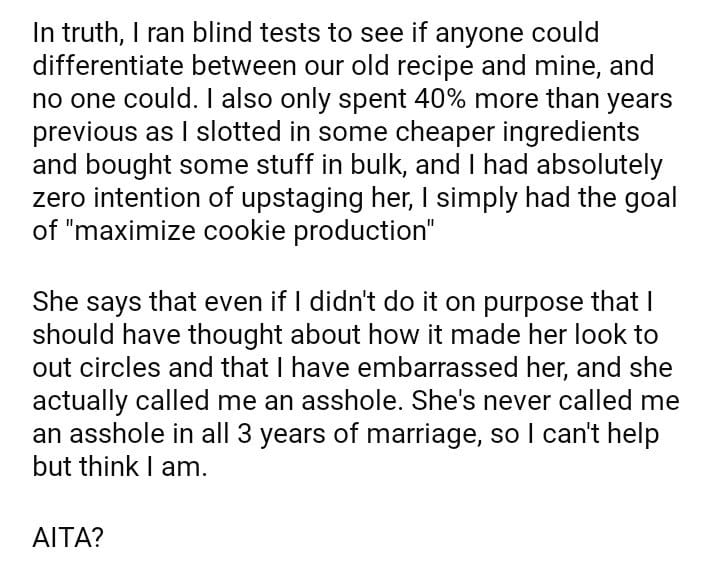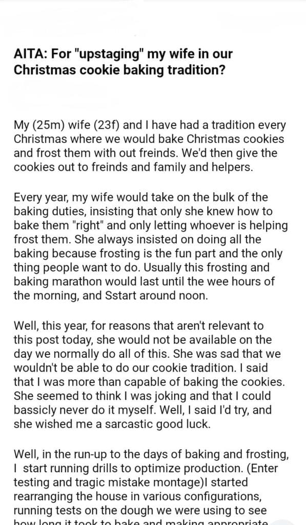 AITA: For “upstaging” my wife in our Christmas cookie baking tradition?