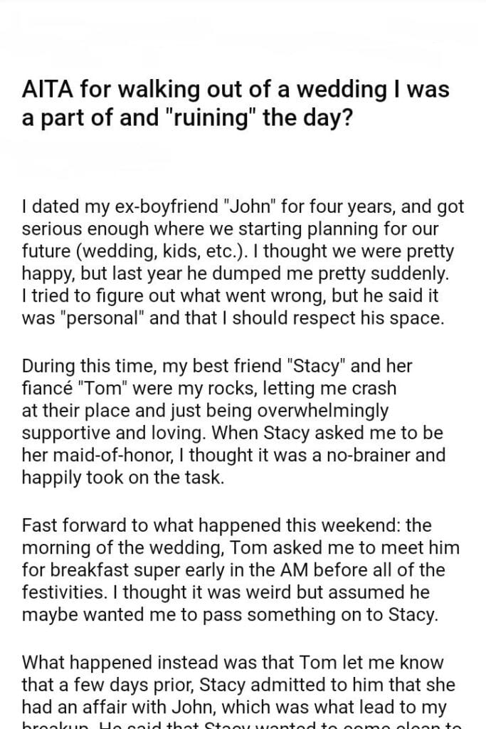 AITA for walking out of a wedding I was a part of