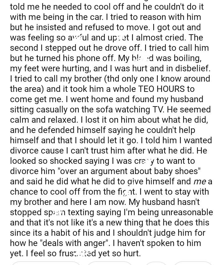 AITA for wanting to divorce my husband for leaving me