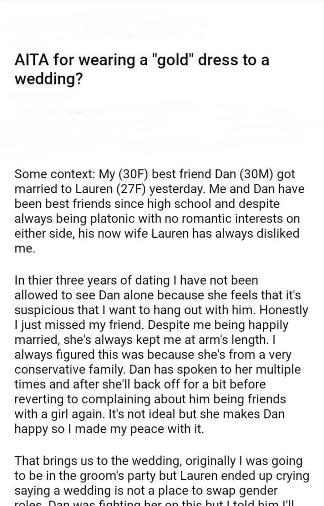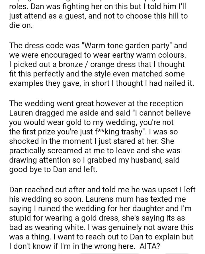 AITA for wearing a “gold” dress