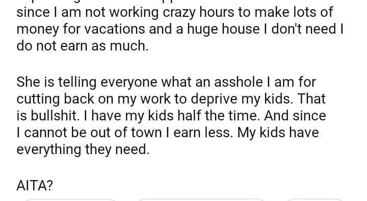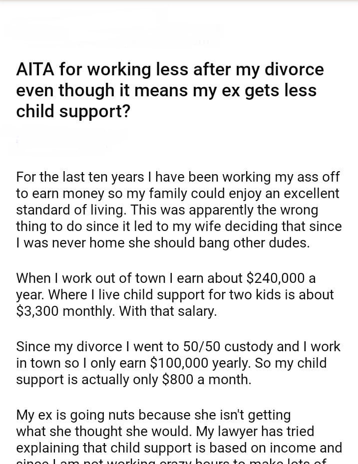 AITA for working less after my divorce