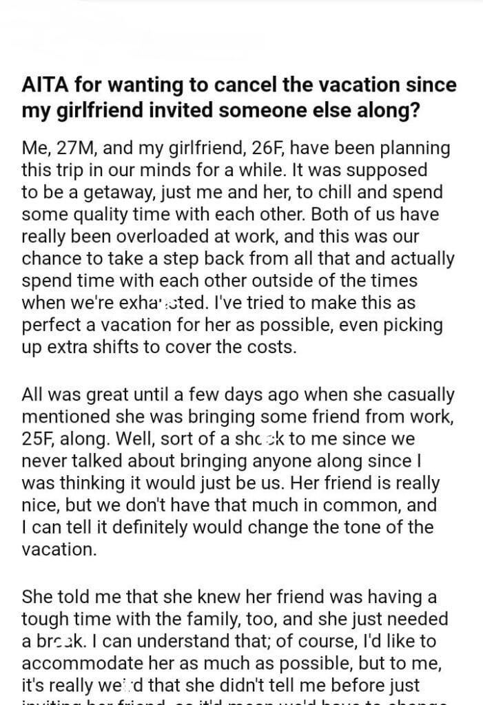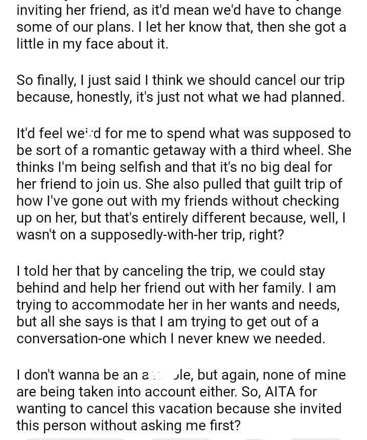 AITA girlfriend invited someone else along?