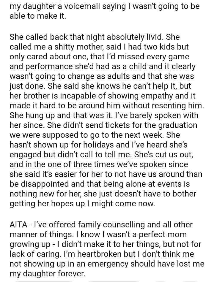 AITA – I missed my daughter’s award ceremony because of my son, she’s still not speaking to me