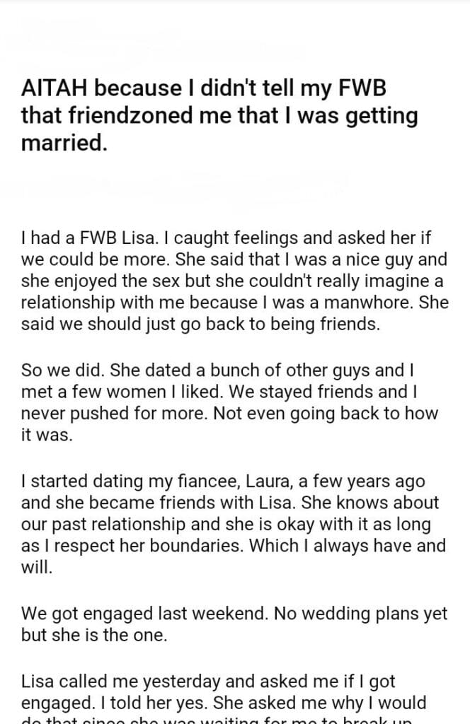 AITAH because I didn’t tell my FWB that I was getting married.