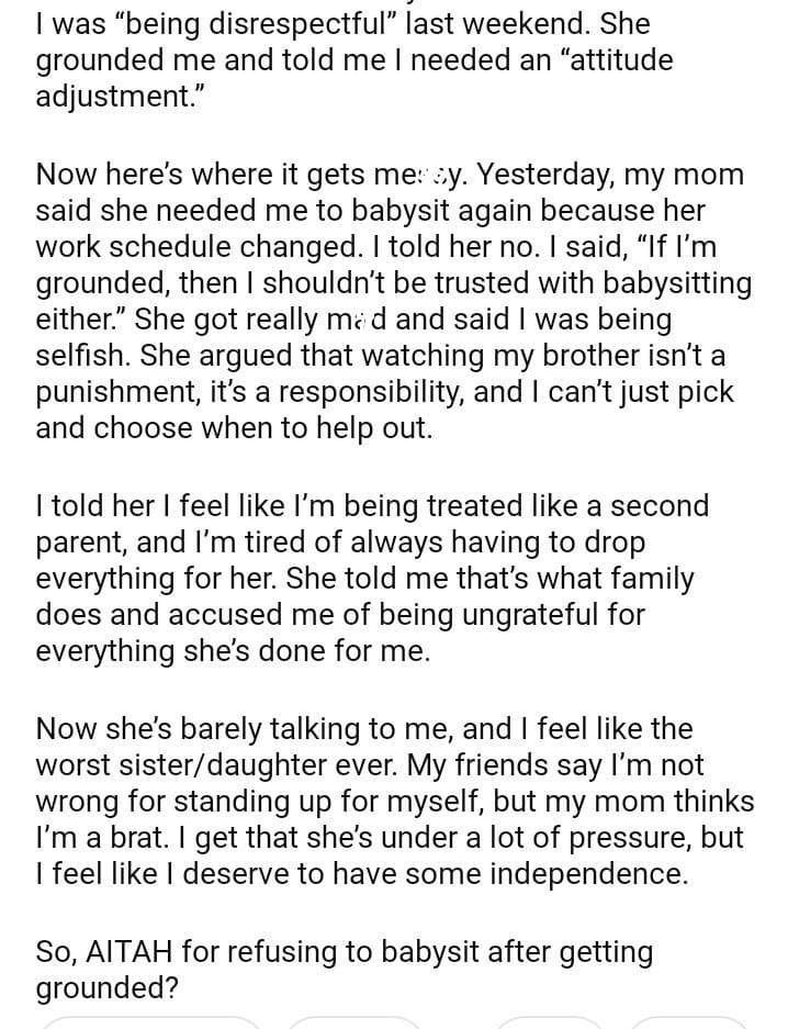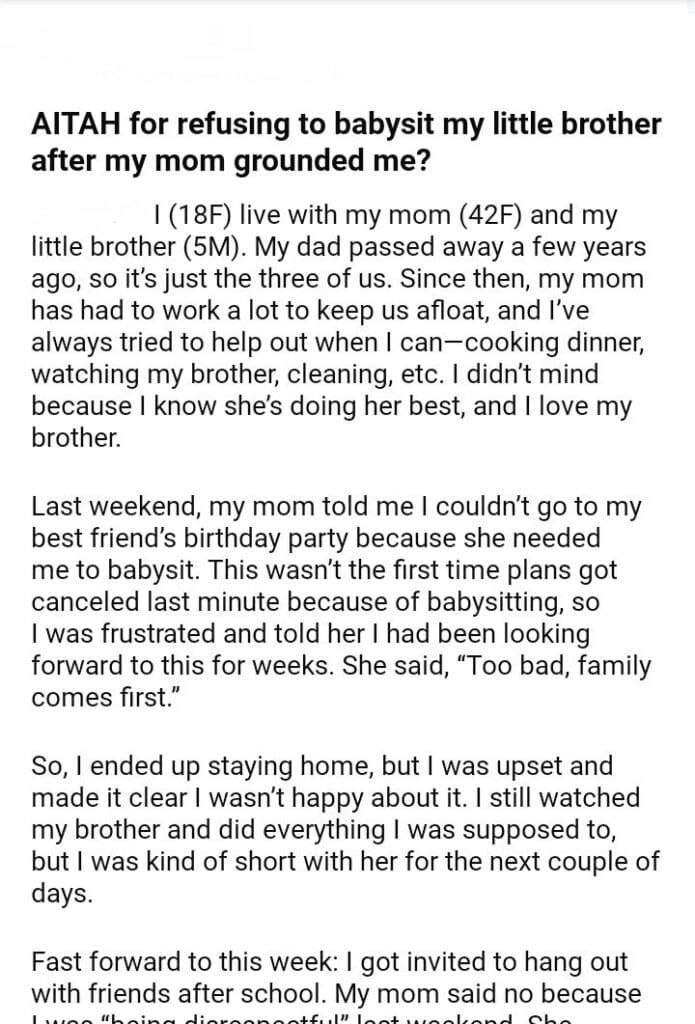 AITAH for babysit my little brother