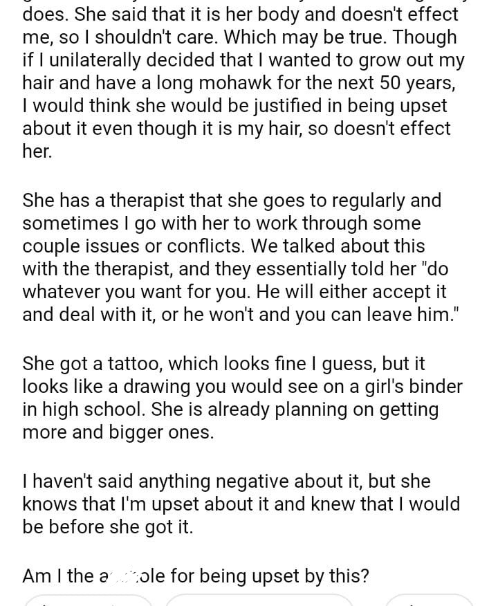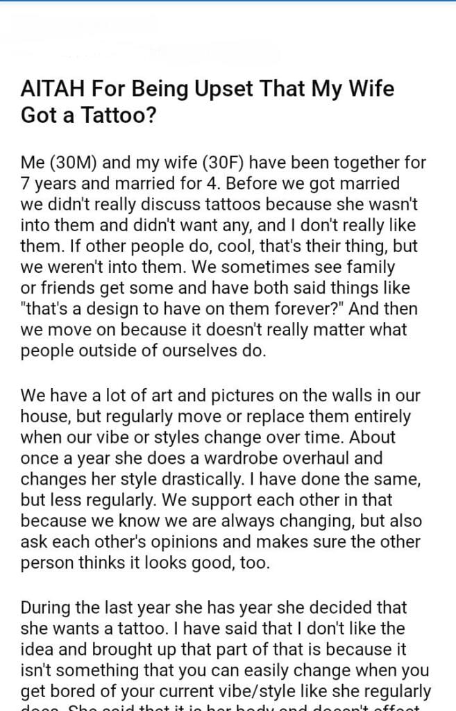 AITAH For Being That My Wife Got A Tattoo