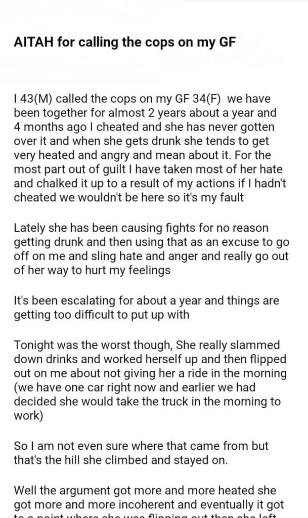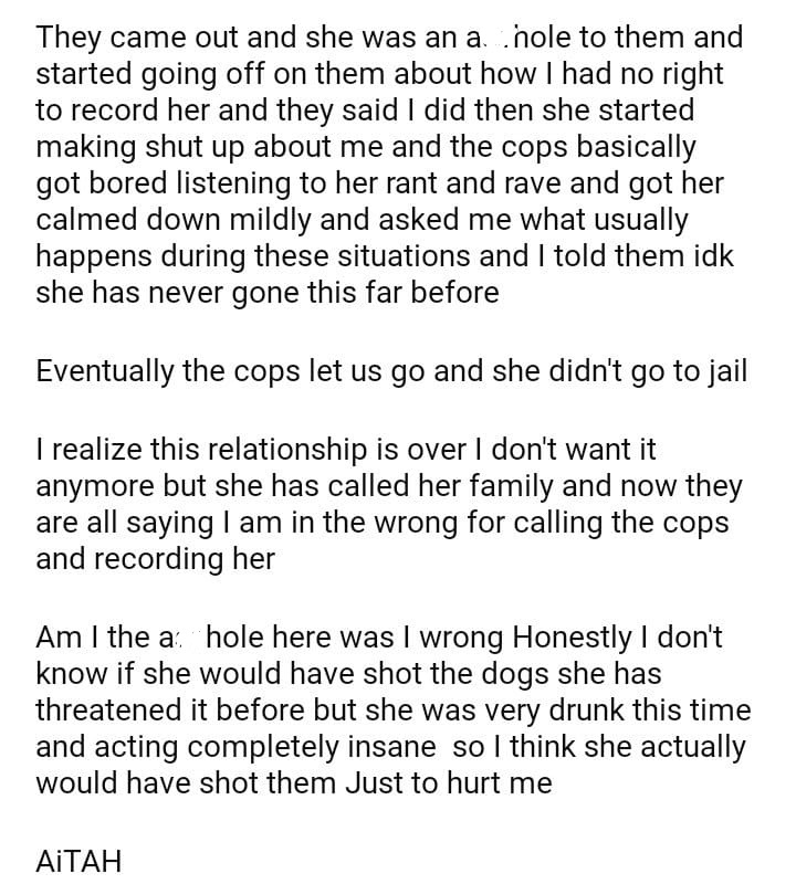 AITAH for calling the cops on my GF