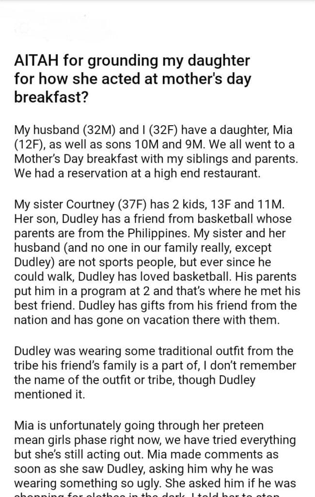 AITAH for daughter for how she acted at mother’s day breakfast?