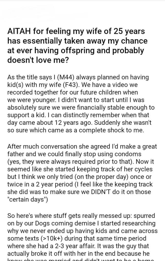 AITAH for feeling my wife of 25 years has essentially taken away my chance