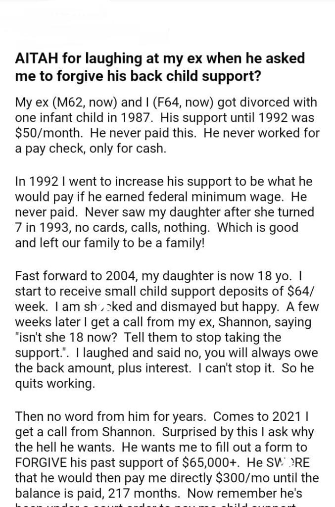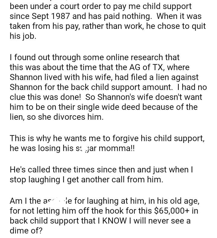 AITAH for laughing at child support?