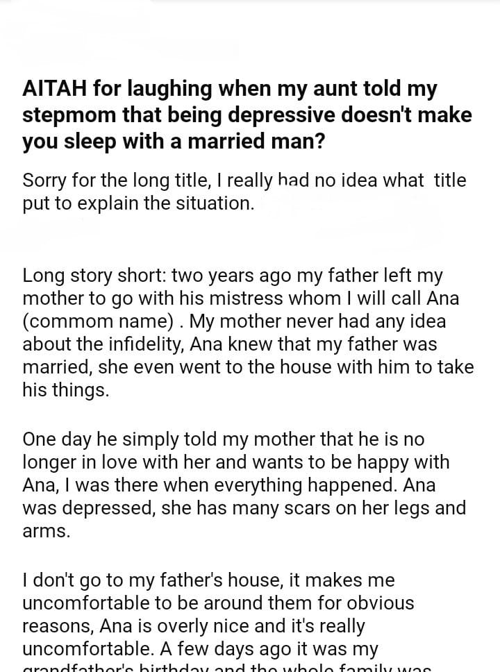 AITAH for laughing when my aunt told my stepmom