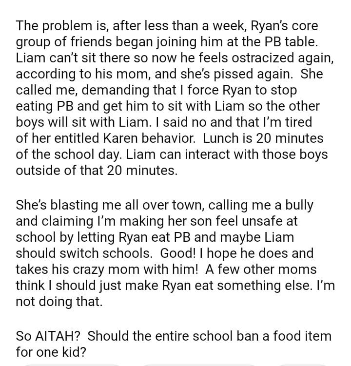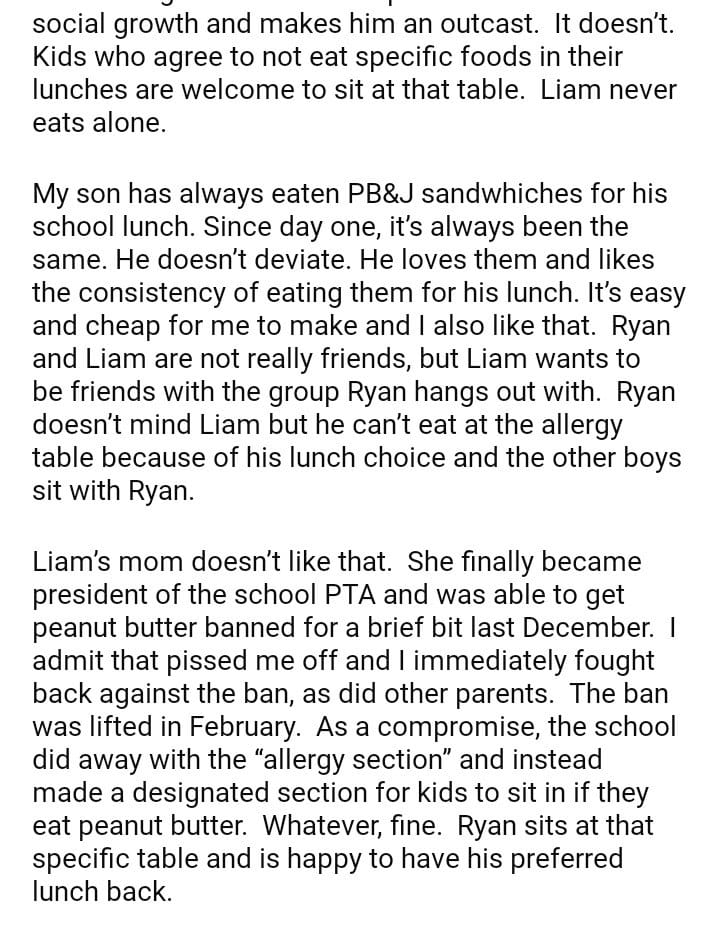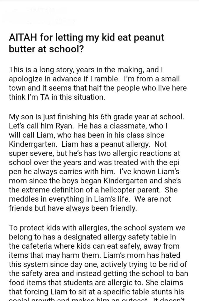 AITAH for letting my kid eat peanut butter at school?