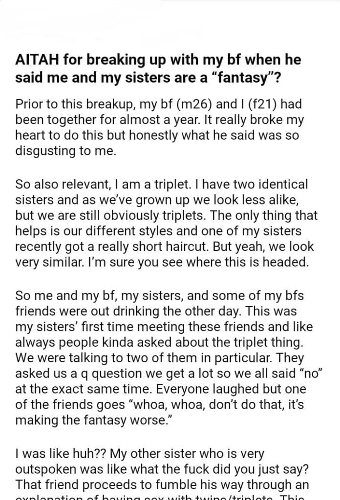 AITAH for my bf after what he said about me and my sisters