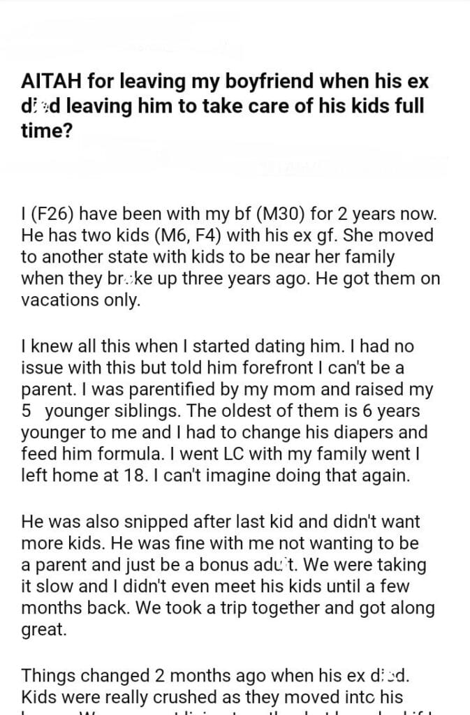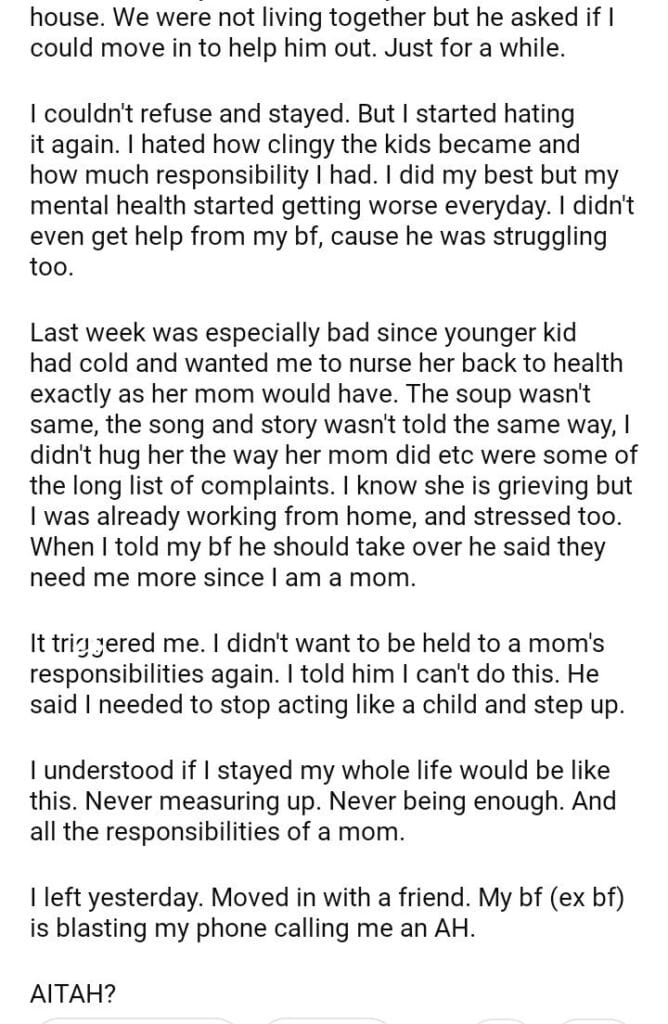 AITAH for my boyfriend and his kids