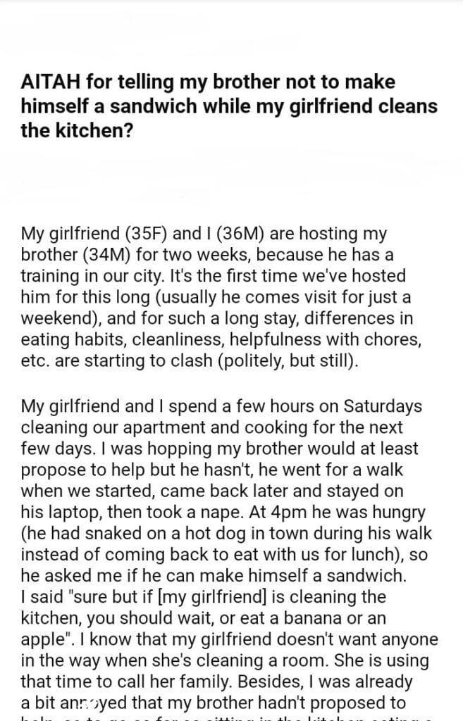 AITAH for my brother not to make himself