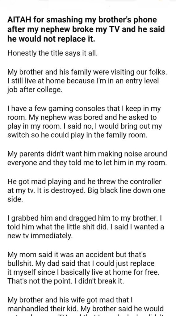 AITAH for my brother’s phone after my nephew