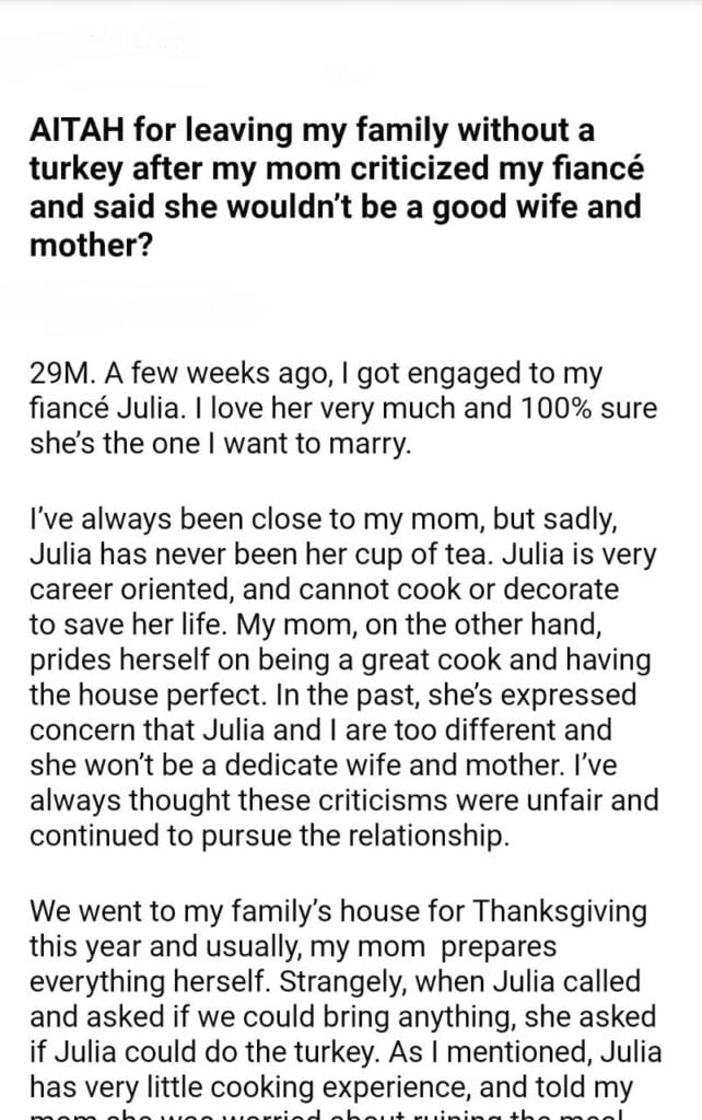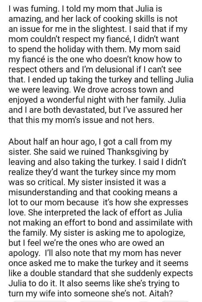 AITAH for my family without a turkey