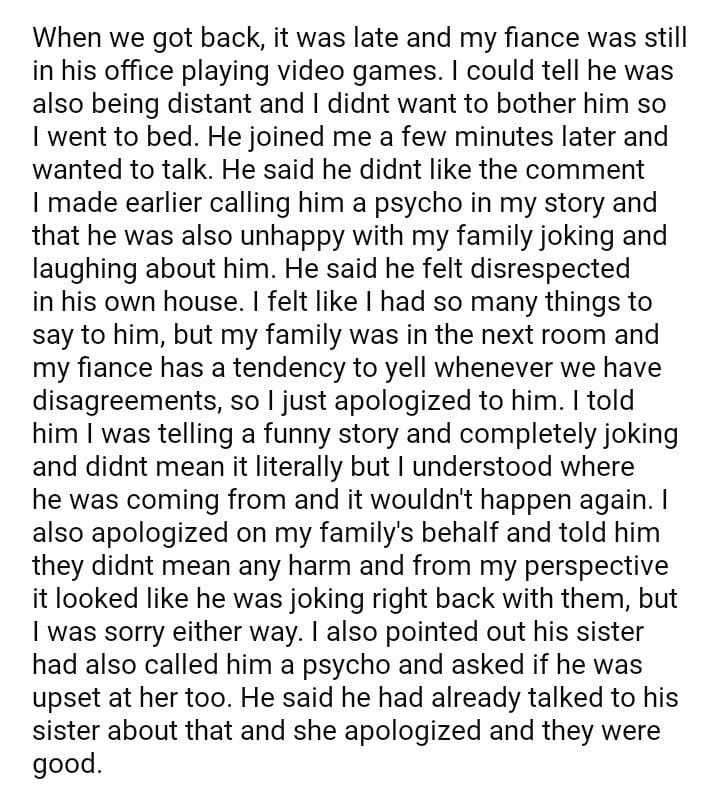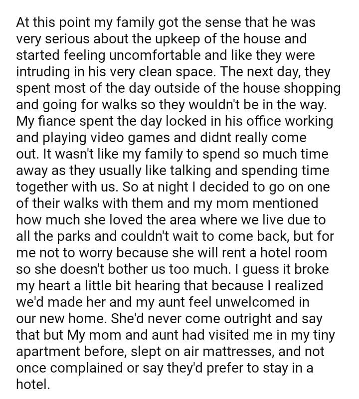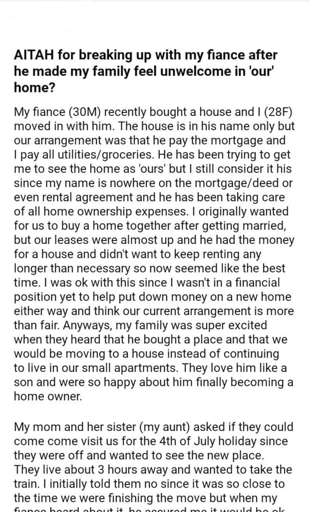 AITAH for my fiance after he made my family feel unwelcome in ‘our’ home?