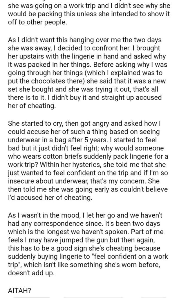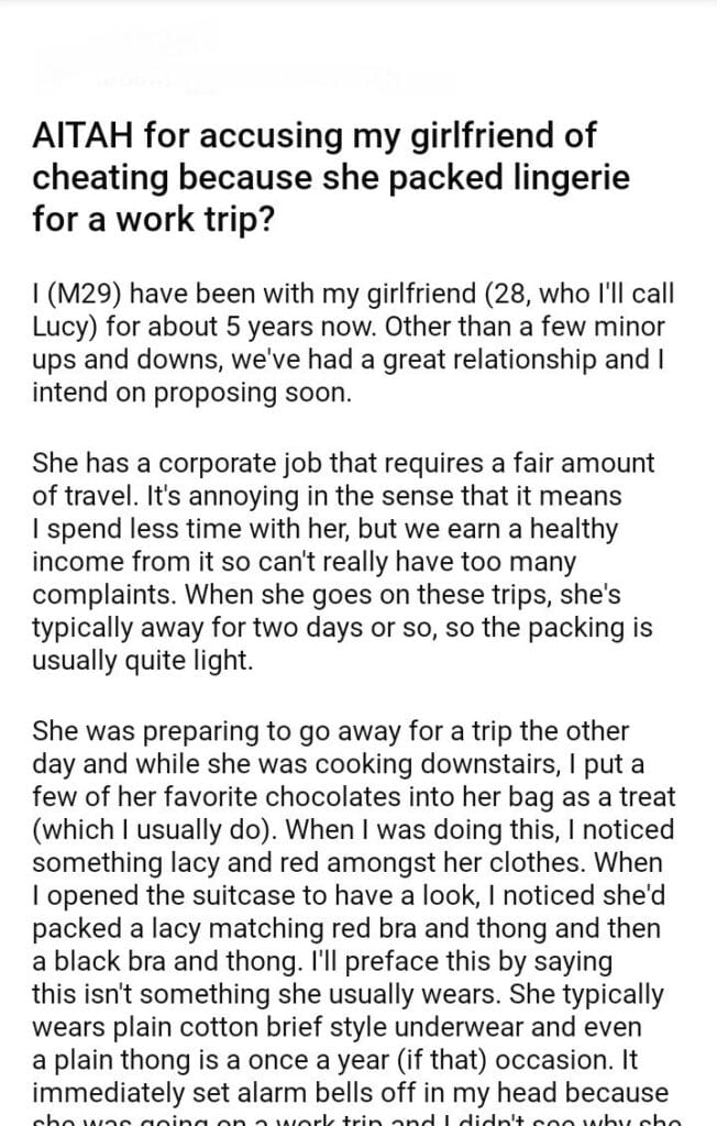AITAH For My Girlfriend Because She Packed For Work Trip