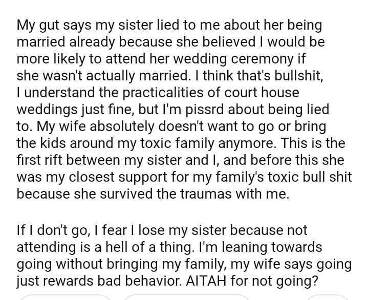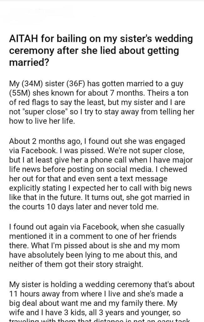 AITAH for my sister’s wedding ceremony