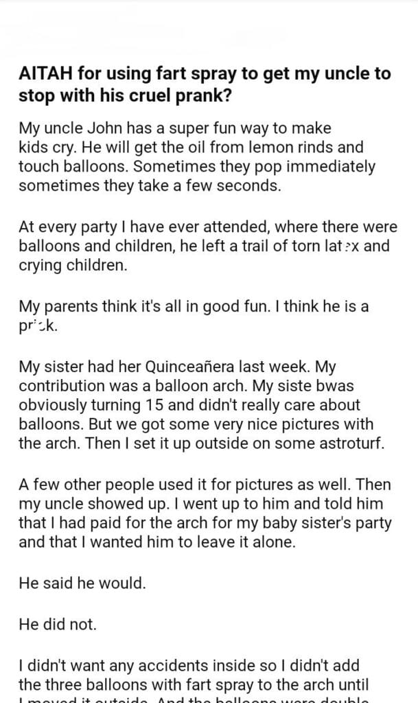 AITAH for my uncle to stop with his prank?