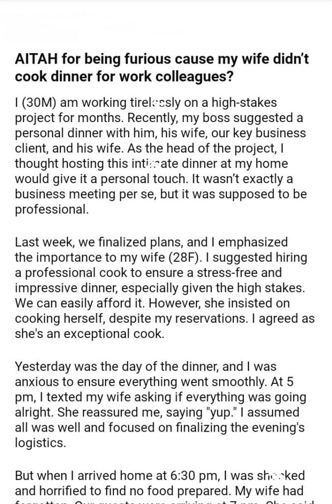 AITAH for my wife didn’t cook dinner