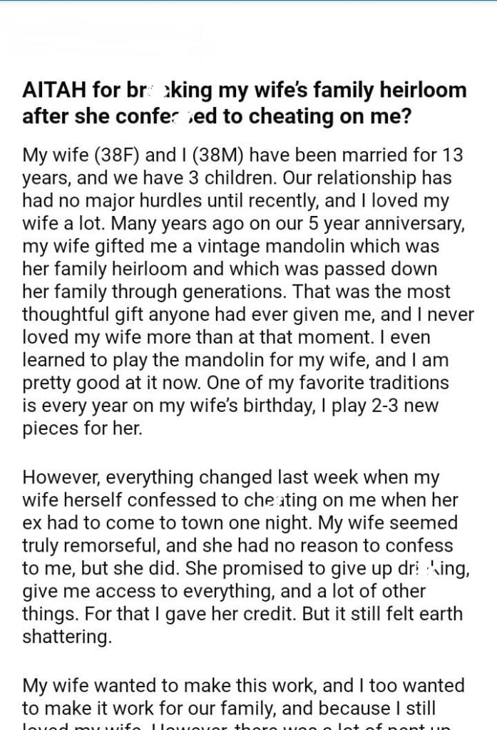 AITAH for My Wife’s Family Heirloom After Chting On Me