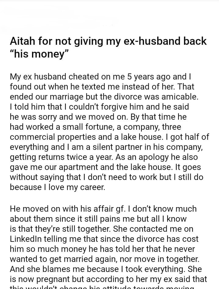 Aitah for not giving my ex-husband back “his money”