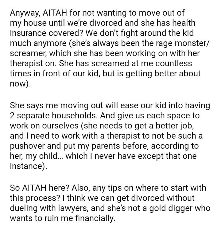 AITAH for not moving out when my wife wants to separate and get divorced soon?