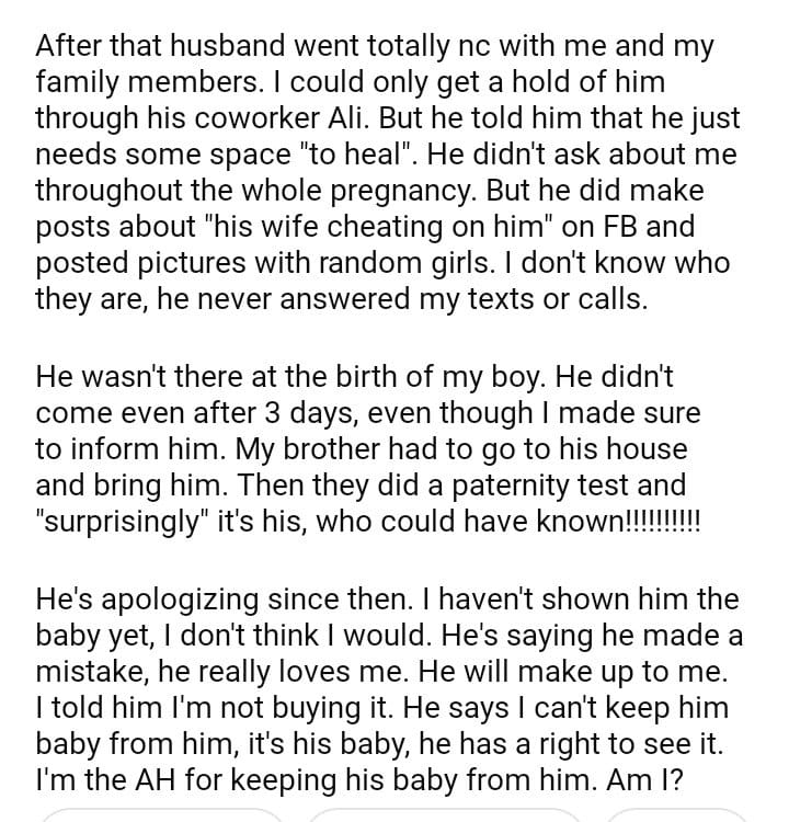 AITAH for not showing our son to my husband after birth
