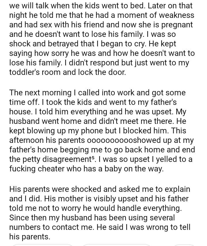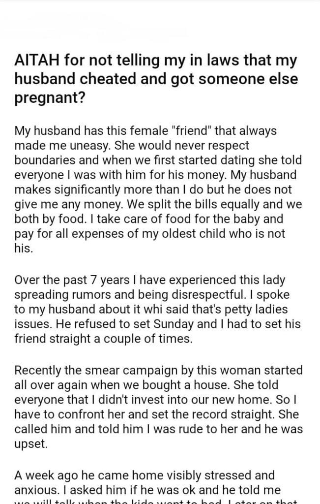 AITAH for not telling my in laws that my husband got someone else pregnant?