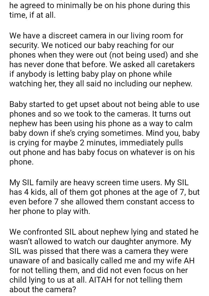 AITAH for not telling my SIL & nephew that there’s a camera in my living room