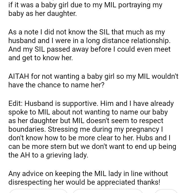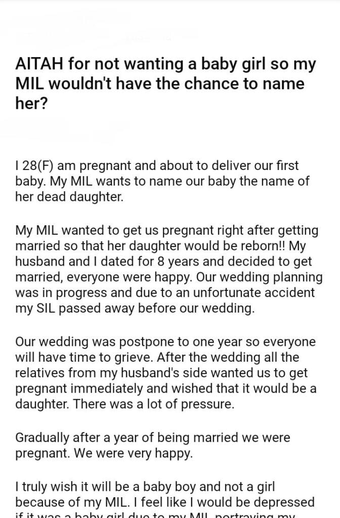 AITAH for not wanting a baby girl so my MIL wouldn’t have the chance to name her?