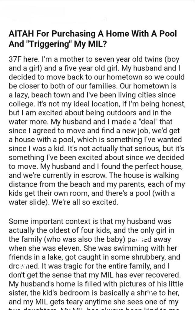 AITAH For Purchasing A Home With A Pool