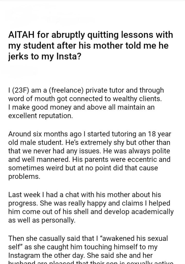 AITAH for quitting lessons with my student