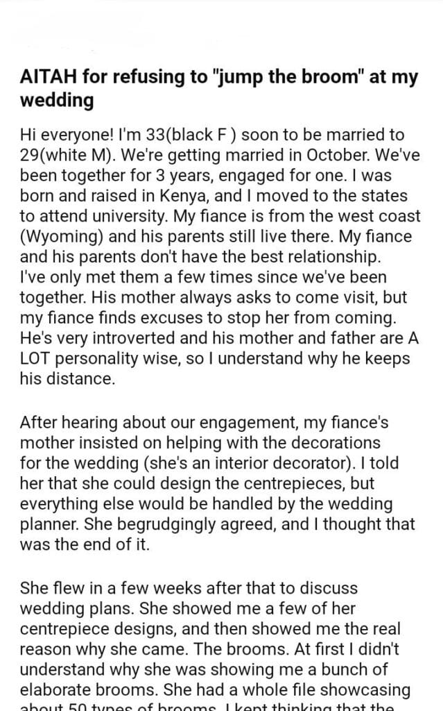 AITAH for refusing to “jump the broom” at my wedding