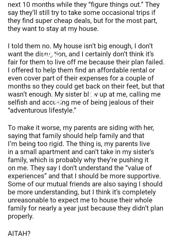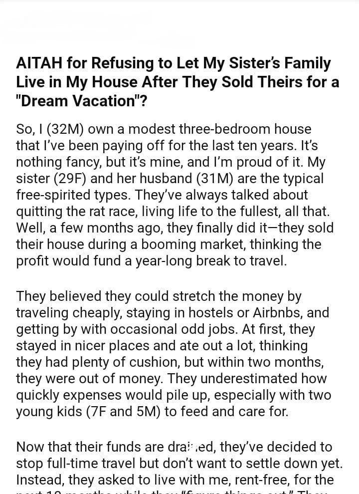 AITAH for Refusing to Let My Sister’s Family Live in My House